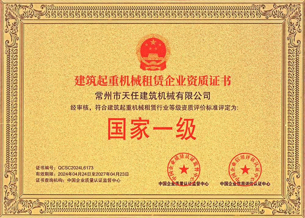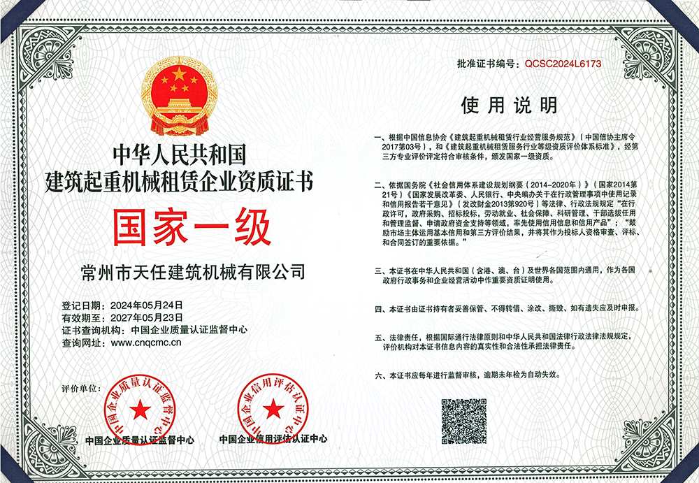 建筑起重機(jī)械租賃企業(yè)資質(zhì)證書